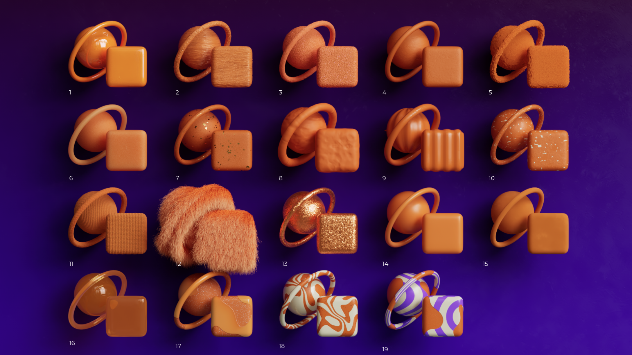 Material: Tactile surfaces (rubber, felt, matte plastic, slime gloss)