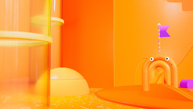 The motion system extends the Playroom identity into soft, elastic behaviors inspired by splat-like forms. Each action follows rounded easing, gentle bounce timing, and organic mask transitions that create a warm, tactile rhythm appropriate for preschool audiences.