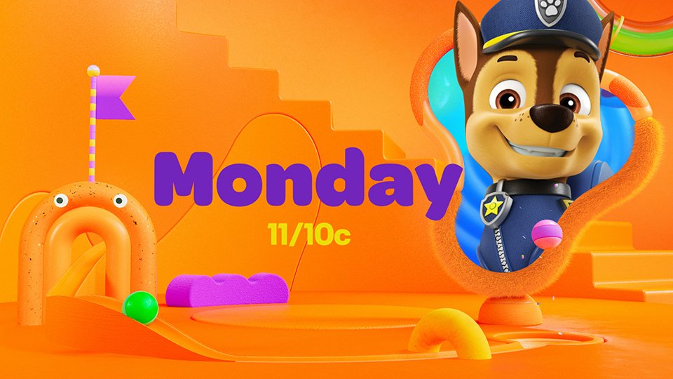 To promote Nickelodeon's preschool shows on Paramount+, we developed a custom graphic package blending the platform’s blue palette with Nick Jr.’s preschool identity. The visuals were simplified for a broader audience, creating a look that is clean, modern, and streaming-friendly.